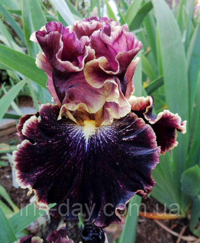 Космічний, незвичайний, дуже помітний ірис. Пелюстки сильно гофровані, ошатні. Стандарти — рубіново-теракотові, зі срібною крихтою й оксамитовою поверхнею. Фоли покриті перламутровим відтінком сливового варення з додаванням соковитого інжиру. Виворіт — попелясто-рожевий. Борідка — бананово-вершкова.
